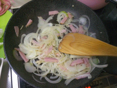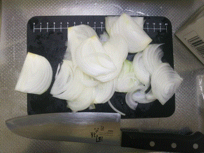 今までの不幸を振り返って出る涙を堪えて、玉ねぎを薄く切ります^oo^o^