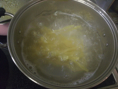 ここまで順調(モタモタ時間込み)だと、そろそろパスタが茹で上がります。